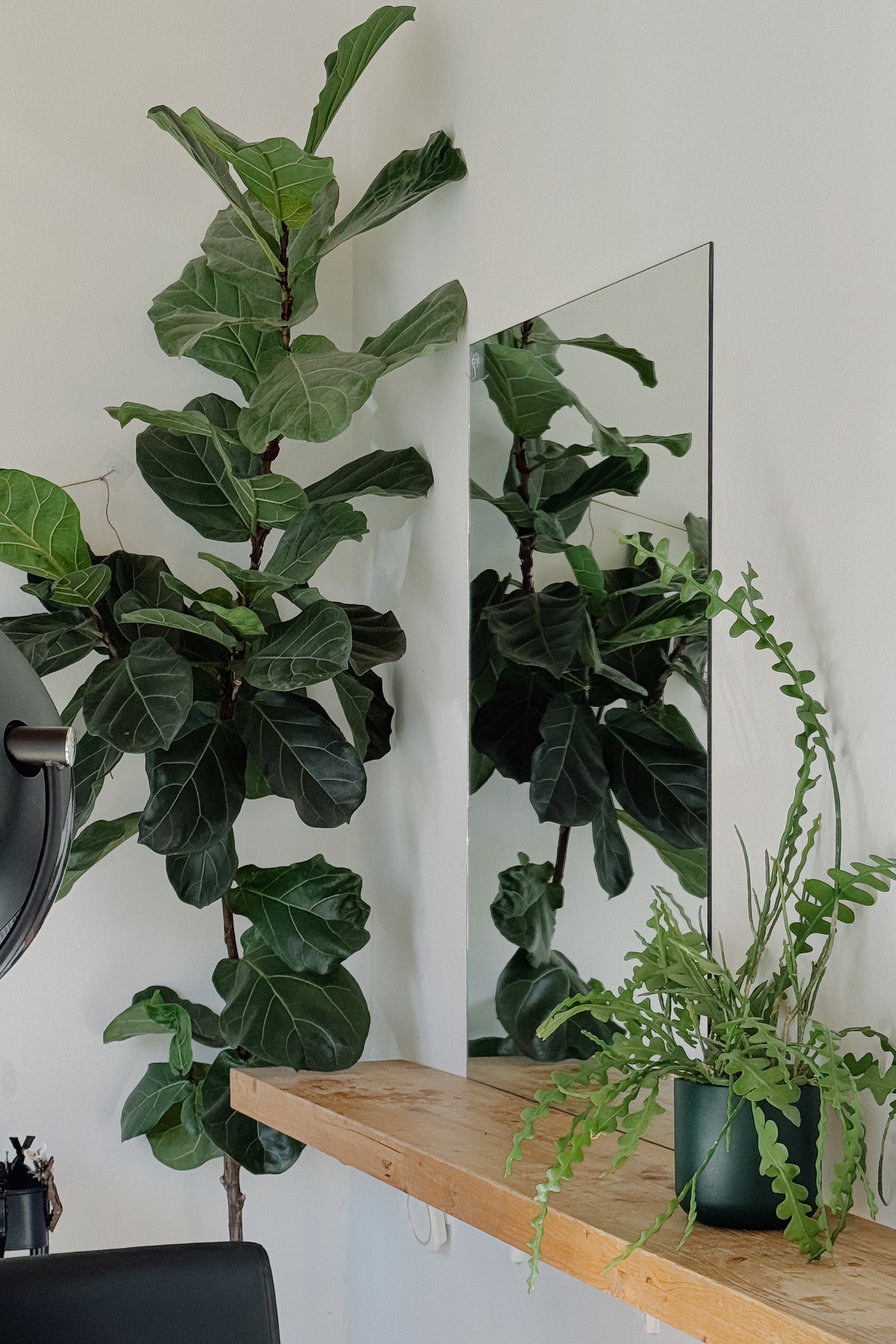 inside, we added ficus lyrata and schefflera - plants that fit naturally into the interior