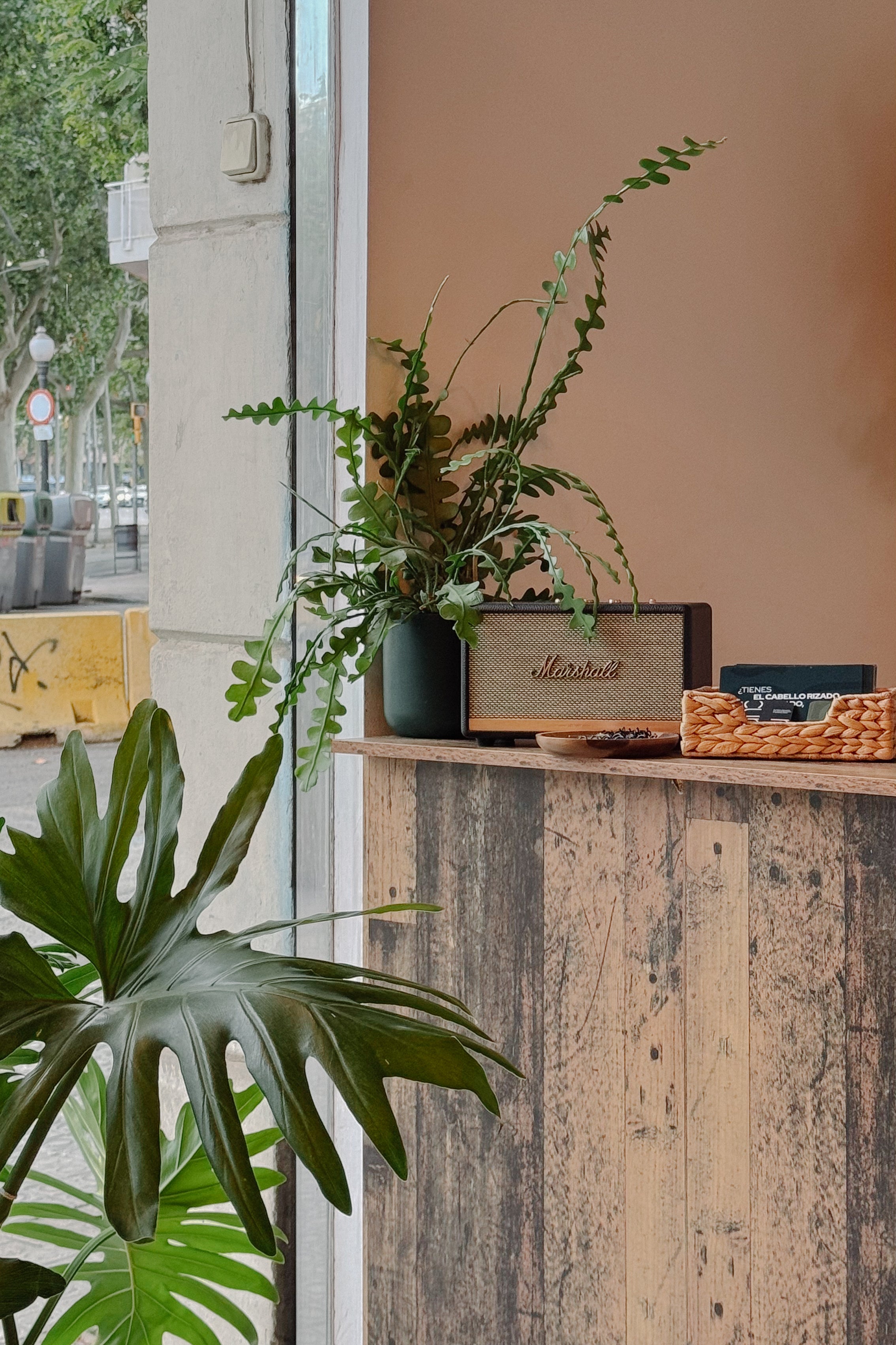 - un salón de belleza en el centro de Barcelona. No hay ventanas dentro del espacio, solo una en la entrada. Todo lo demás vive plenamente bajo luces de cultivo.