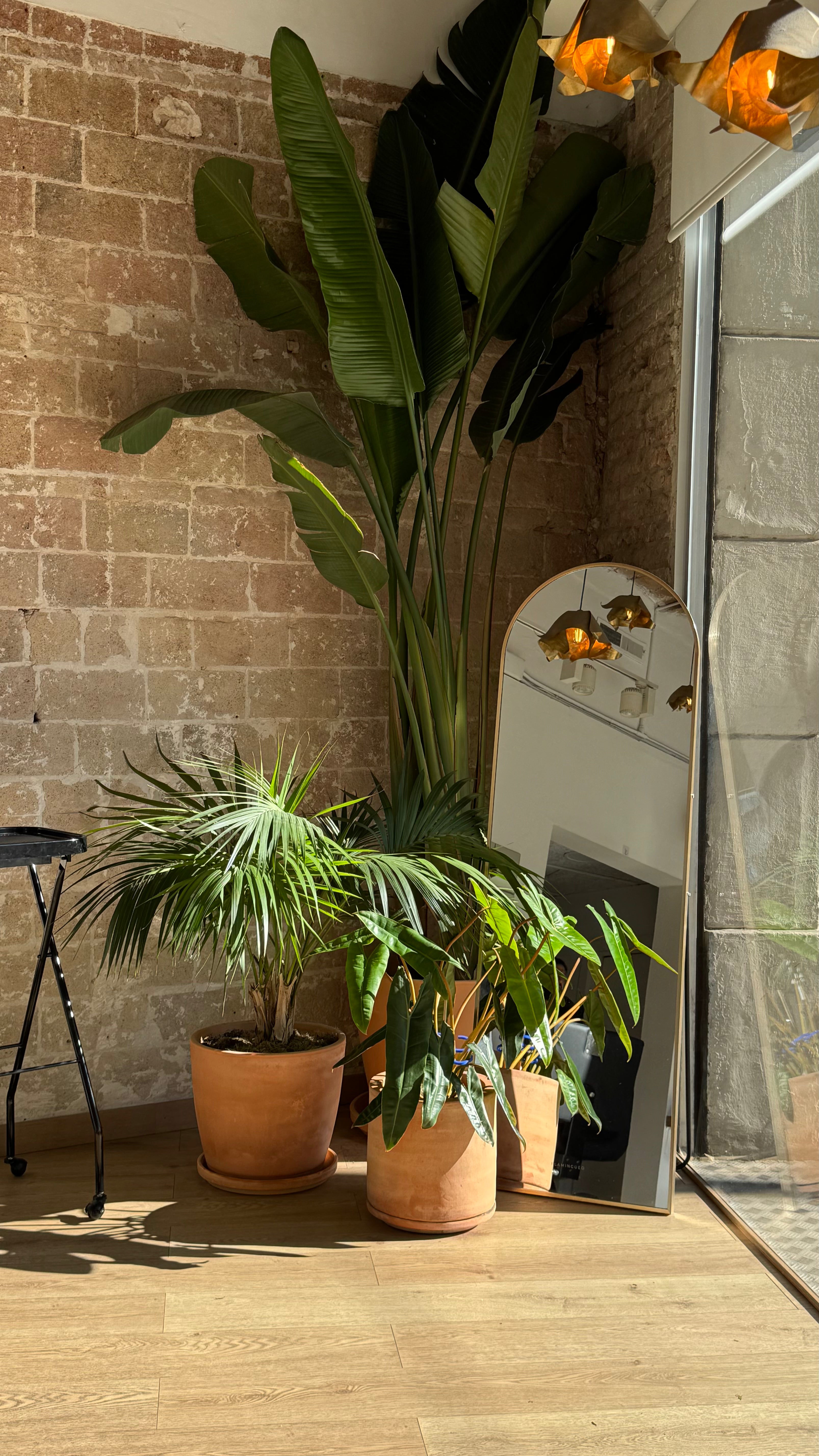 Construimos una configuración que mantiene las plantas prosperando sin luz natural: ✿ enchufes programados para ciclos de luz diurna ✿ lámparas de espectro completo ✿ mantenimiento semanal por parte de nuestro equipo